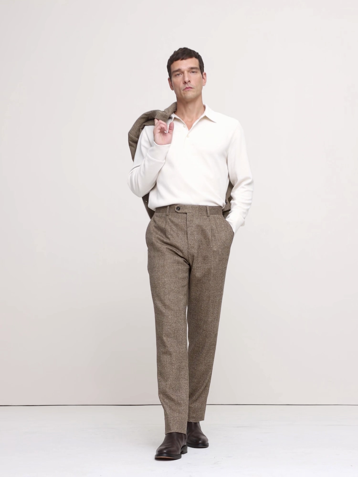Italian Herringbone Suit Pant - Brown