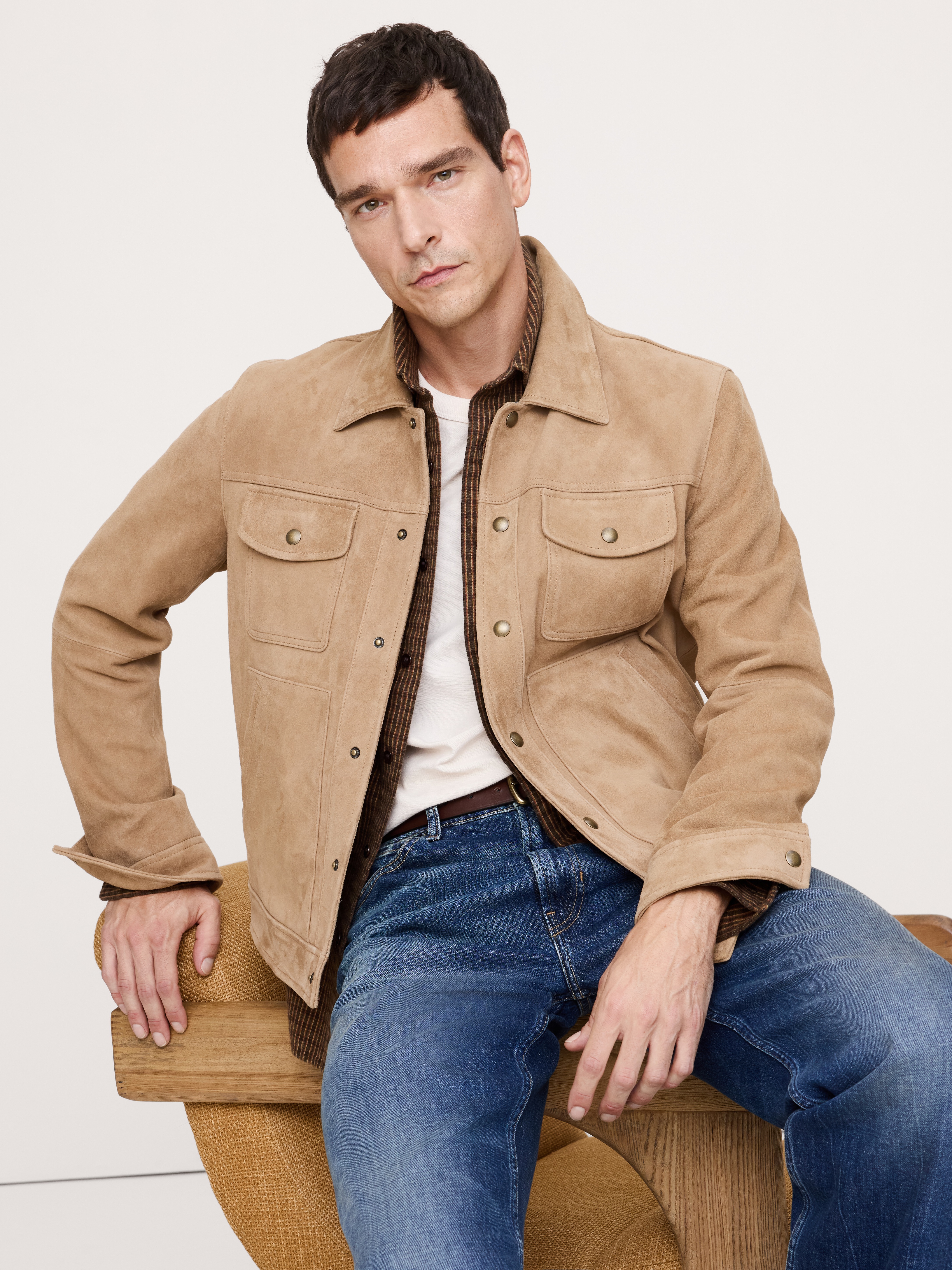 Shop Suede Trucker Jacket - Beige by Banana Republic. Brand new, featuring beige colors. Sold by Banana Republic, verified seller. Free shipping on orders over $50.