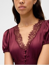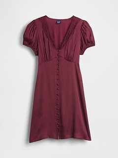 Shop Satin Lace-Trim V-Neck Mini Dress - Red by Gap. Brand new, featuring red colors. Perfect for dressy style enthusiasts. Sold by Gap, verified seller. Free shipping on orders over $50.