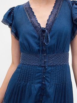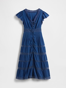 Shop Lace-Trim Midi Dress - Blue by Gap. Brand new, featuring blue colors. Perfect for dressy style enthusiasts. Sold by Gap, verified seller. Free shipping on orders over $50.