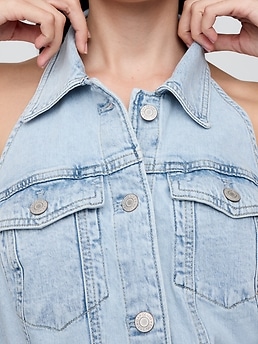 Shop Icon Denim Halter Mini Dress - Blue by Gap. Brand new, featuring blue colors. Perfect for dressy style enthusiasts. Sold by Gap, verified seller. Free shipping on orders over $50.