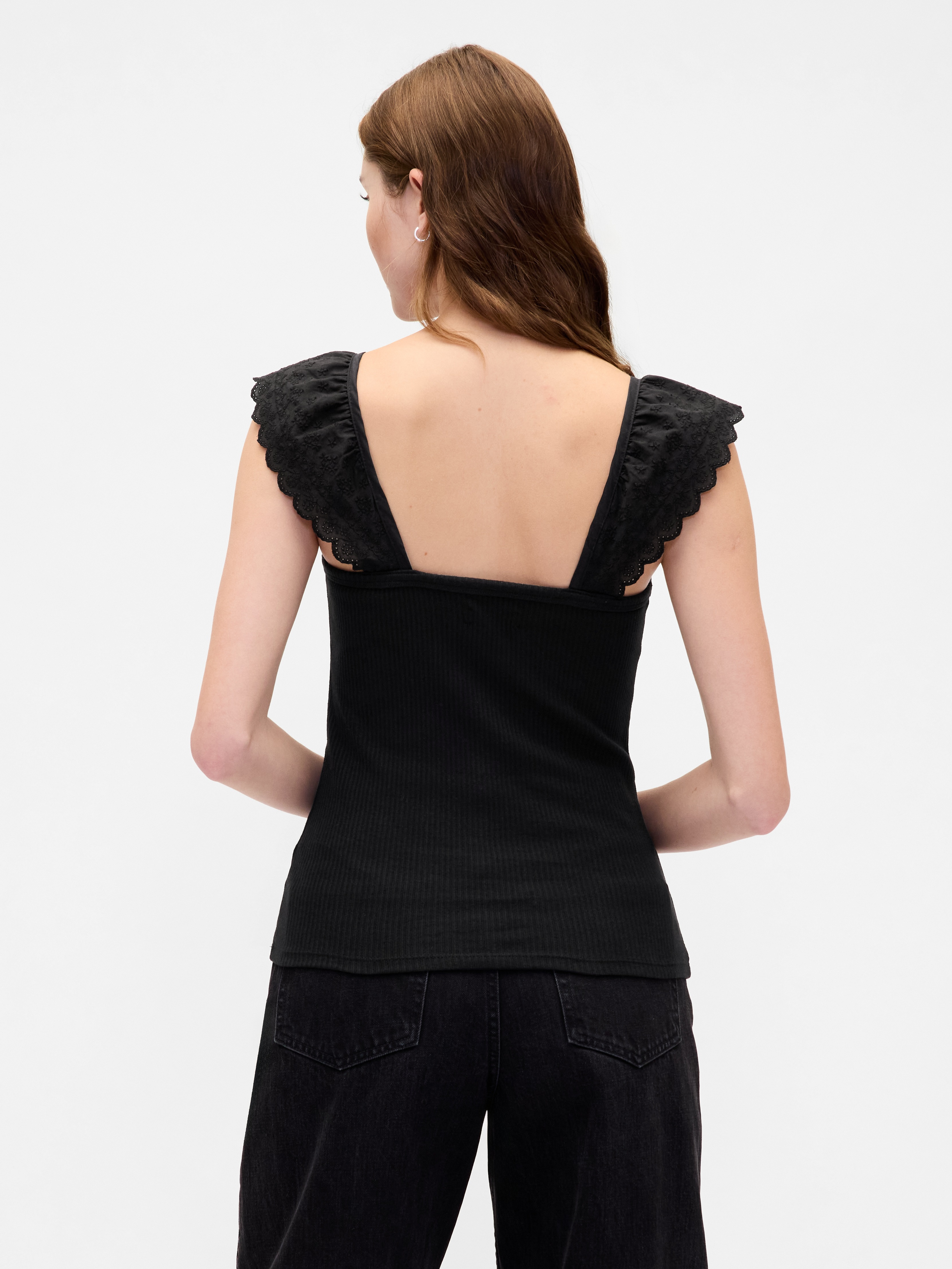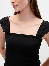 Shop Modern Rib Flutter Tank Top - Black by Gap. Brand new, featuring black colors. Sold by Gap, verified seller. Free shipping on orders over $50.