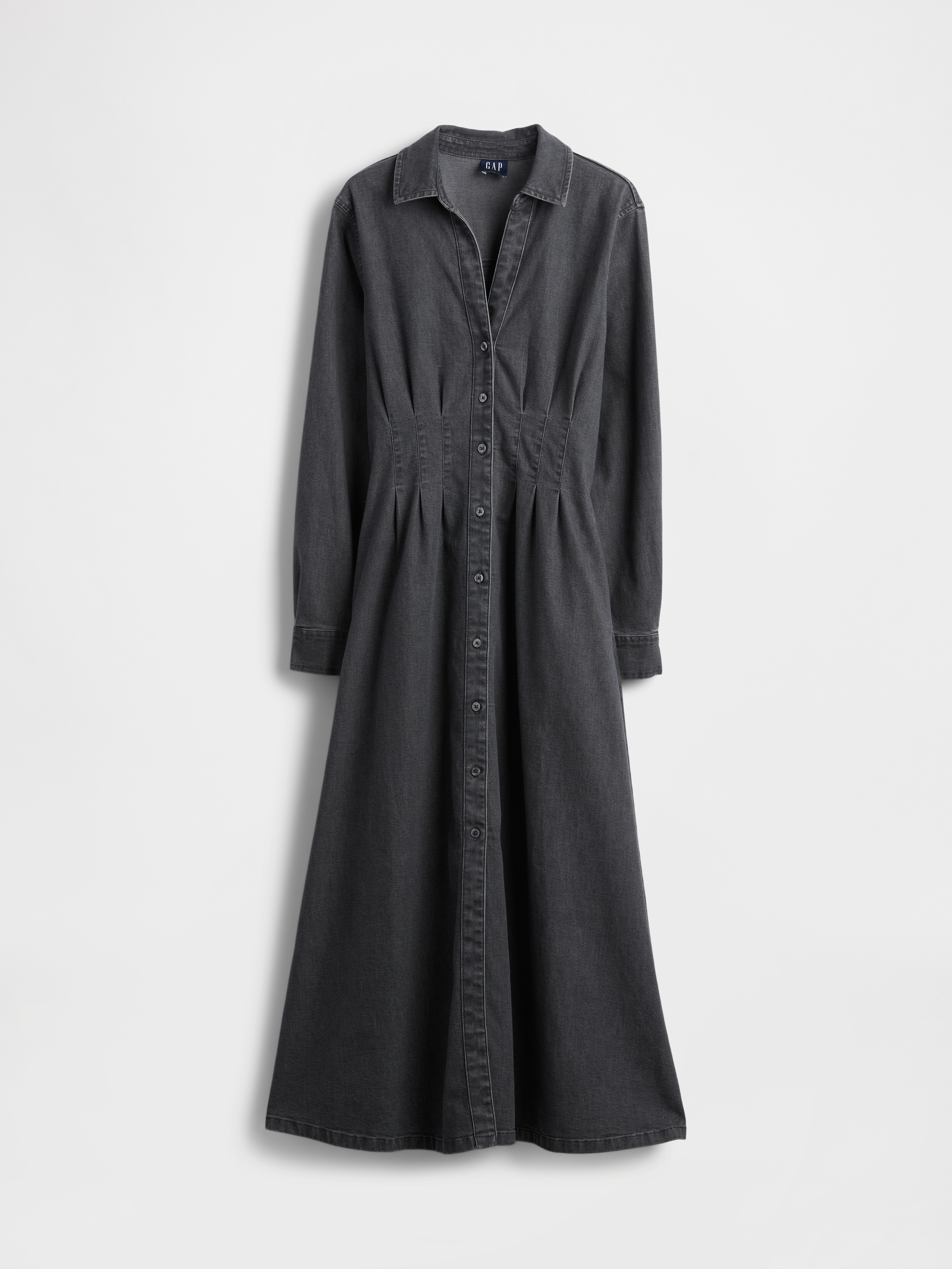 Shop Denim Pintuck Button-Front Maxi Dress - Black by Gap. Brand new, featuring black colors. Perfect for dressy style enthusiasts. Sold by Gap, verified seller. Free shipping on orders over $50.
